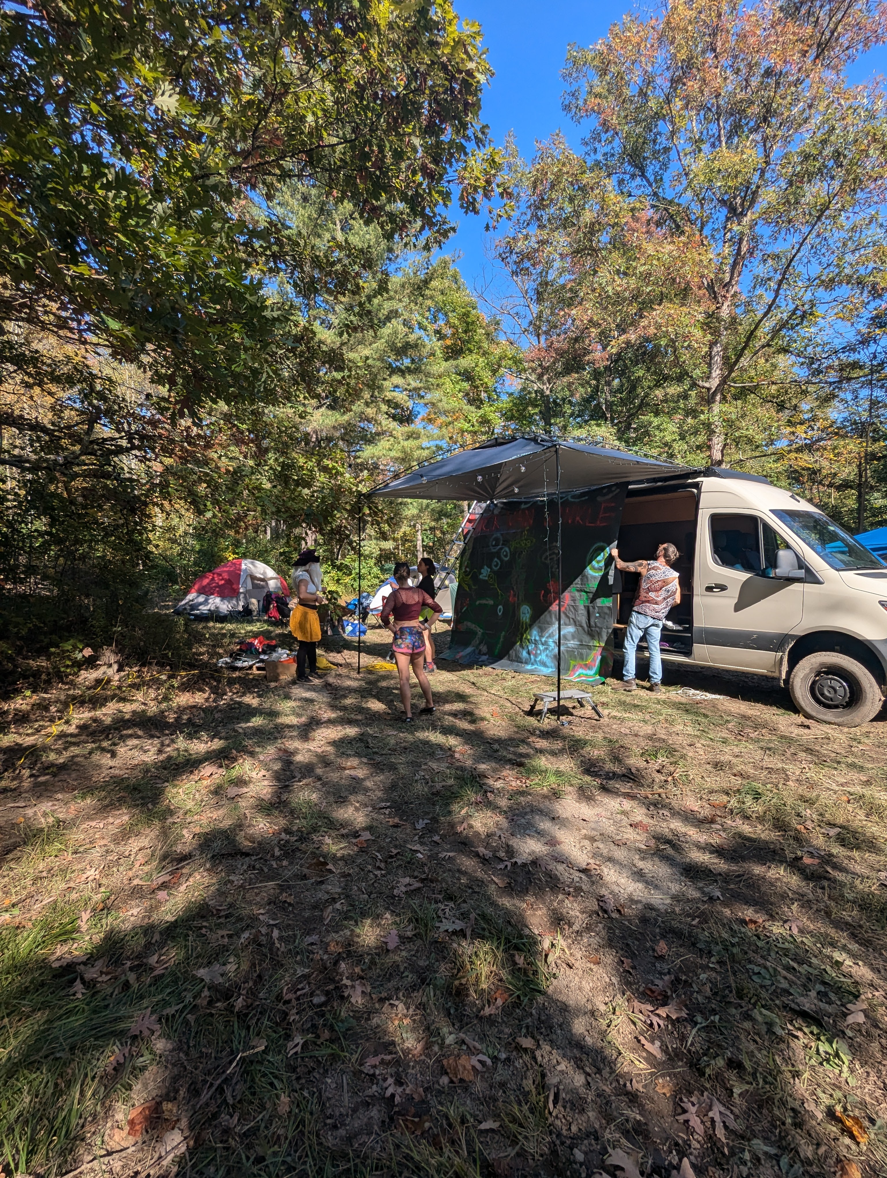 "Trick VAN Winkle" was an immersive, participatory art installation created for Constellation Burn, a regional Burning Man event in Pennsylvania. Hidden deep in the woods, our installation featured a graffiti-covered art car, a handcrafted performance stage, woodland dance floor, and a trickster-themed interactive experience. Visitors were invited to share their best "trick" on our stage in exchange for a magical beverage, becoming active participants in the folklore we created rather than passive observers.
